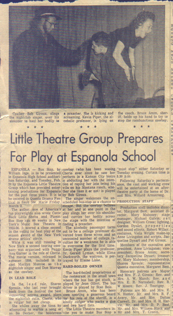 The Espanola Little Theatre, Box 5082 Espanola, Ontario P5E 1S1 (705) 869-8698