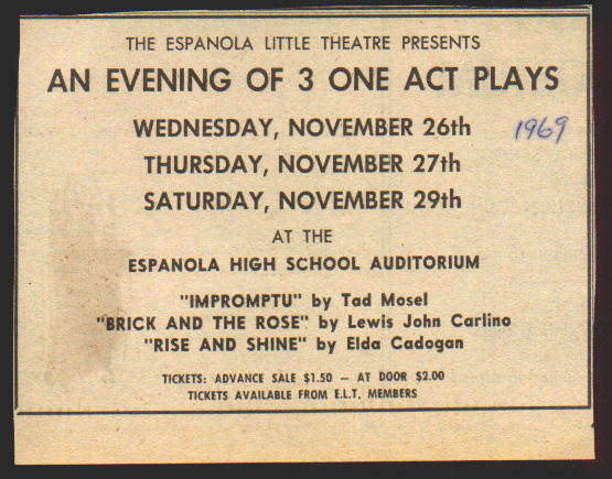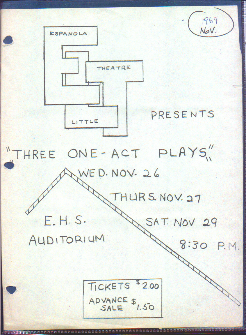 1969/70 Season Evening of One Act Plays Nov 26, 27, 29 (Espanola High School)