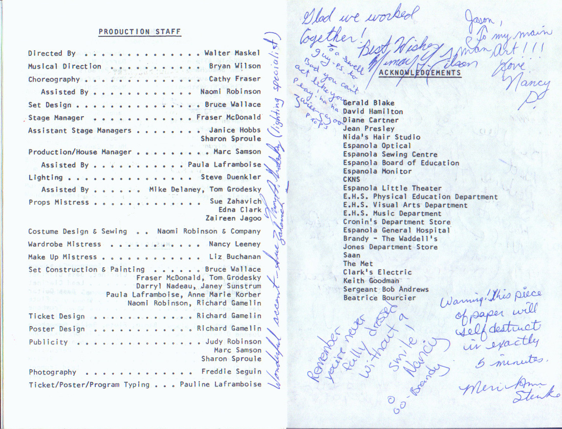 The Espanola Little Theatre, Box 5082 Espanola, Ontario P5E 1S1 (705) 869-8698