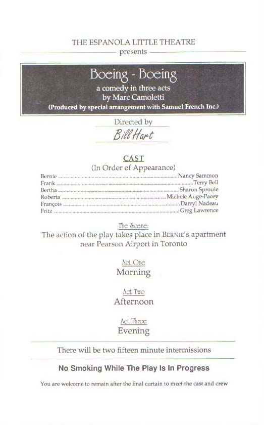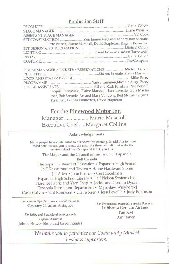 The Espanola Little Theatre, Box 5082 Espanola, Ontario P5E 1S1 (705) 869-8698