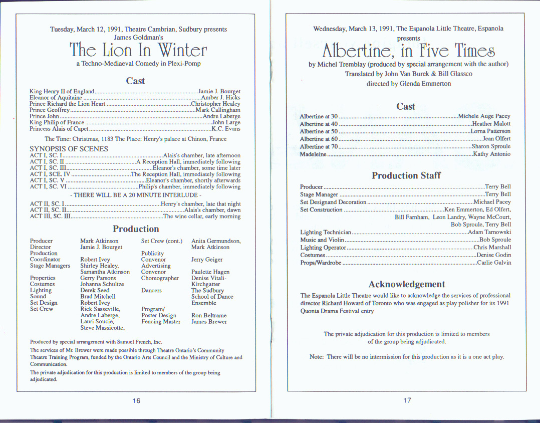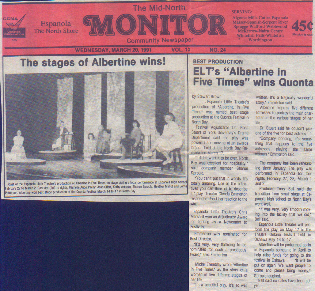 Bay QUONTA), May 17 (Theatre Ontario in Oshawa)