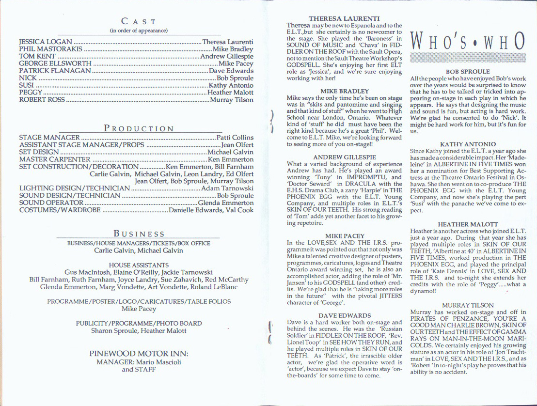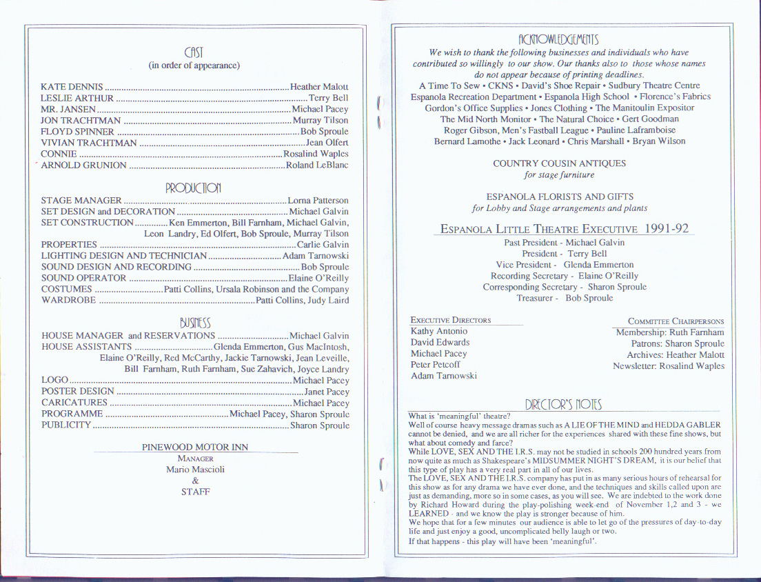 The Espanola Little Theatre, Box 5082 Espanola, Ontario P5E 1S1 (705) 869-8698