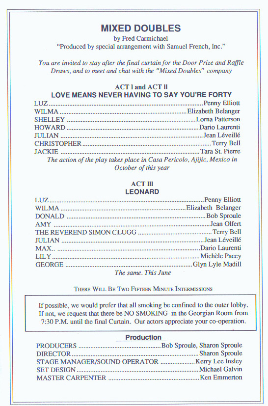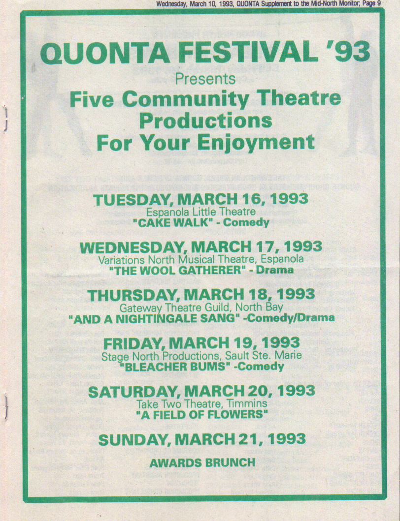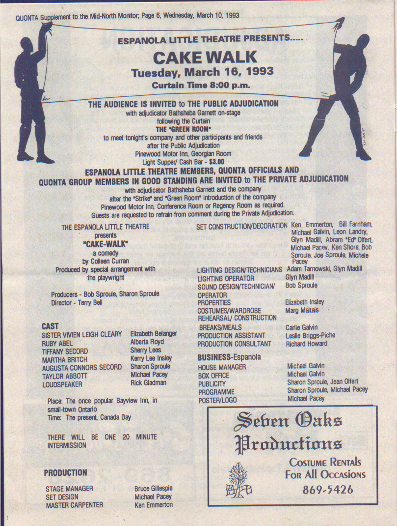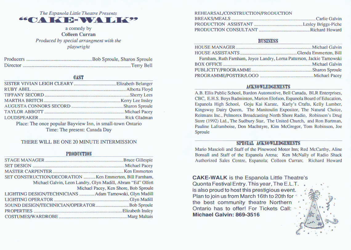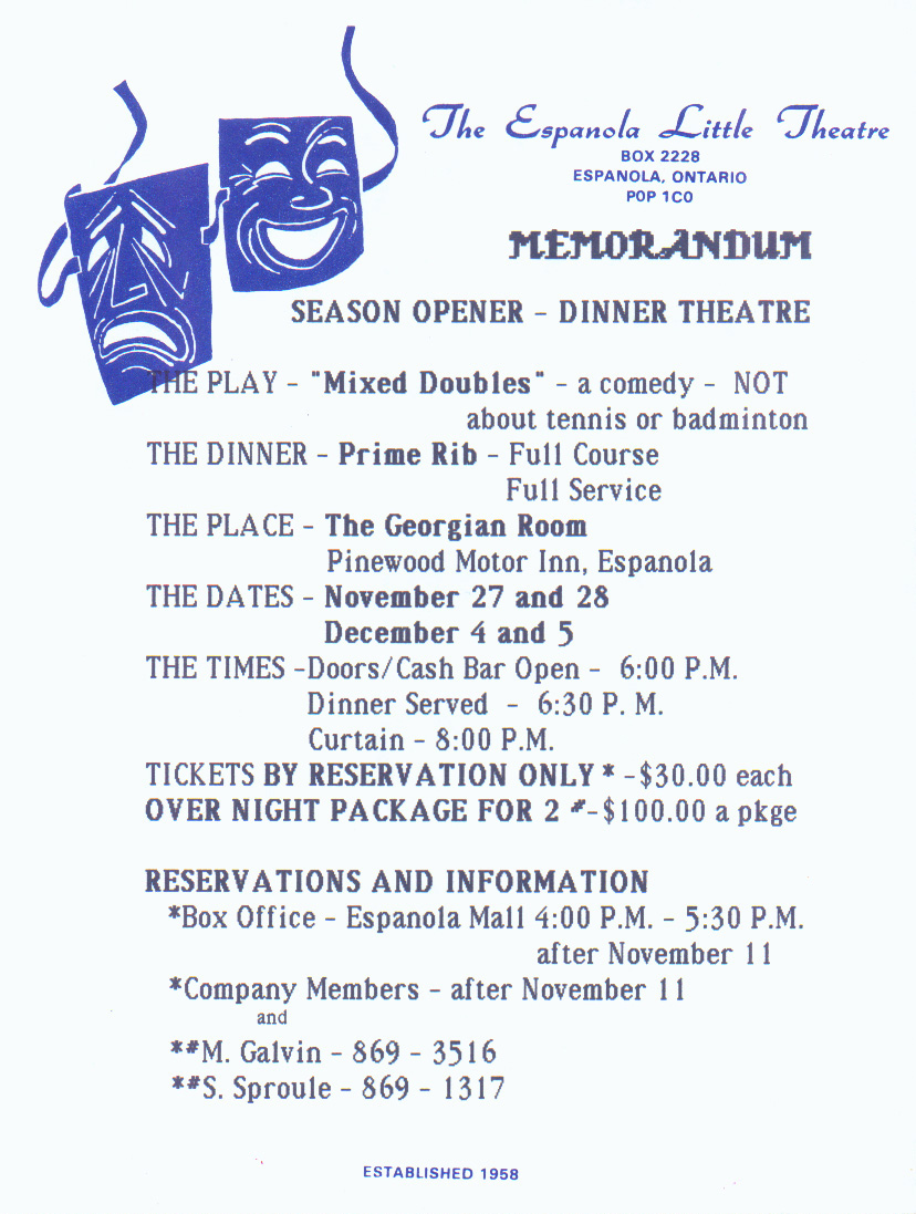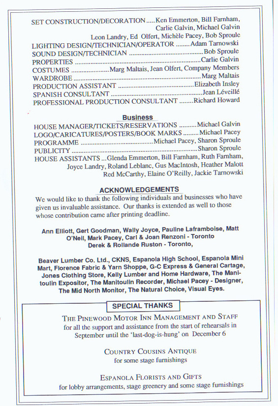 The Espanola Little Theatre, Box 5082 Espanola, Ontario P5E 1S1 (705) 869-8698