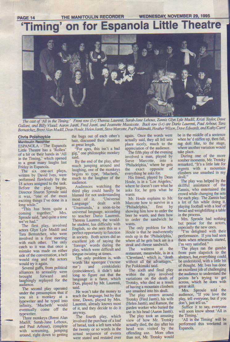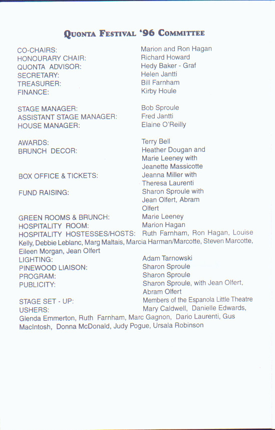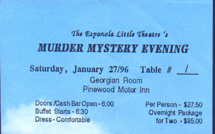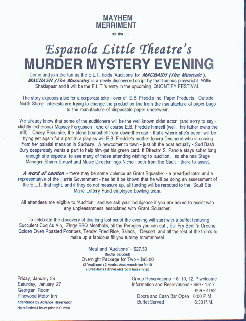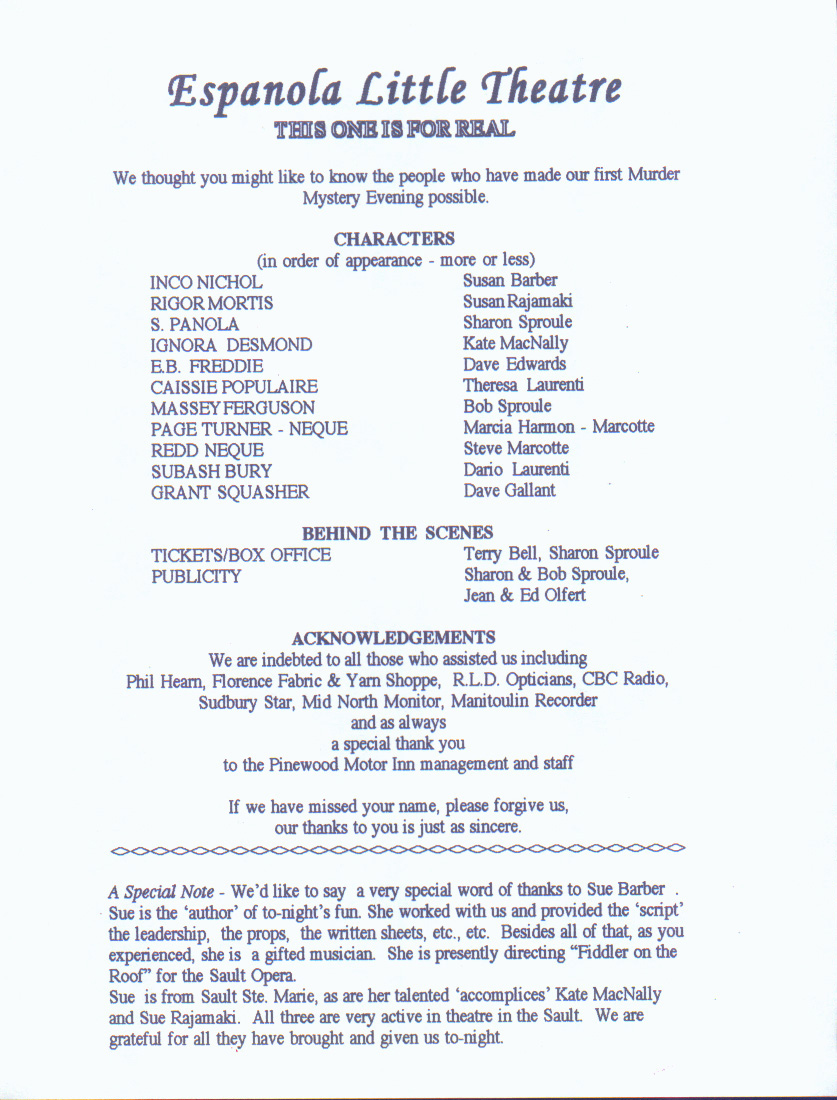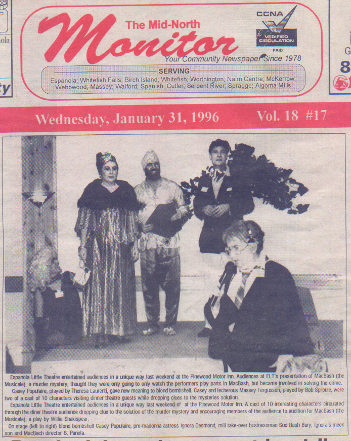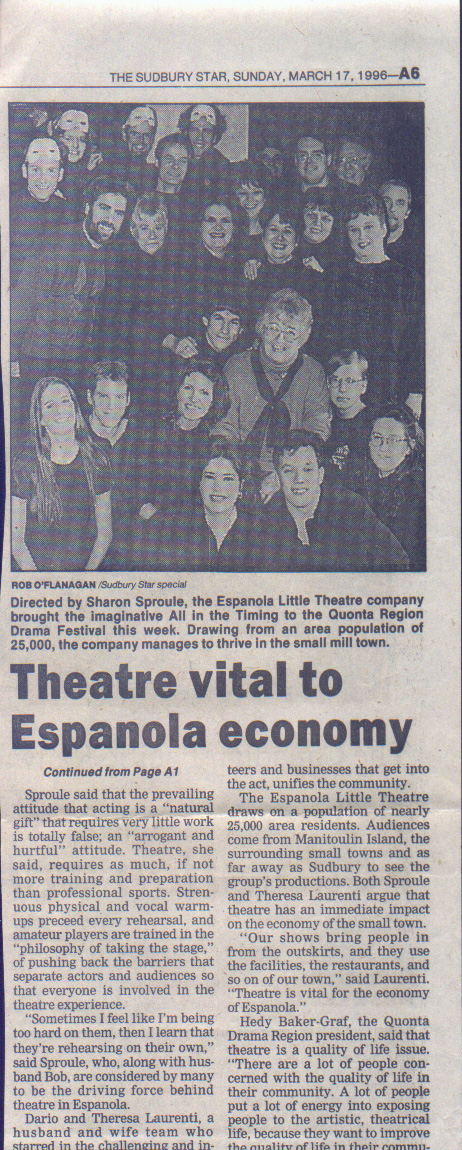 The Espanola Little Theatre, Box 5082 Espanola, Ontario P5E 1S1 (705) 869-8698