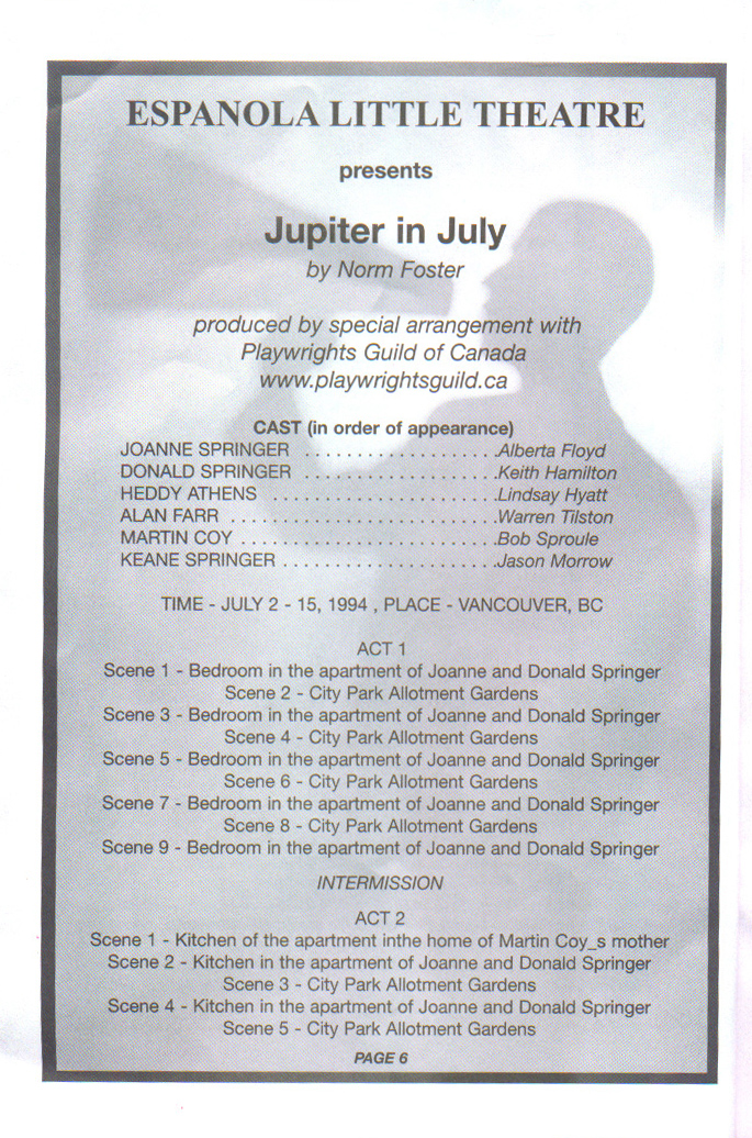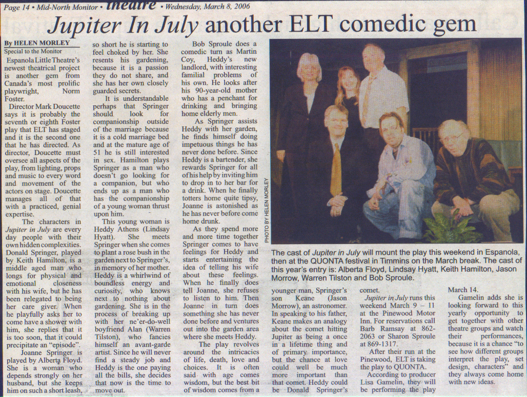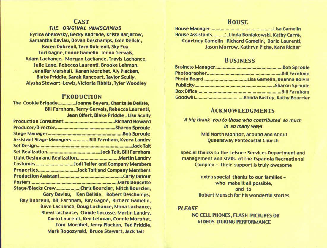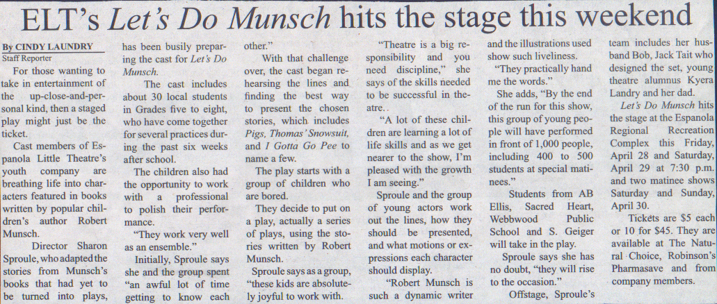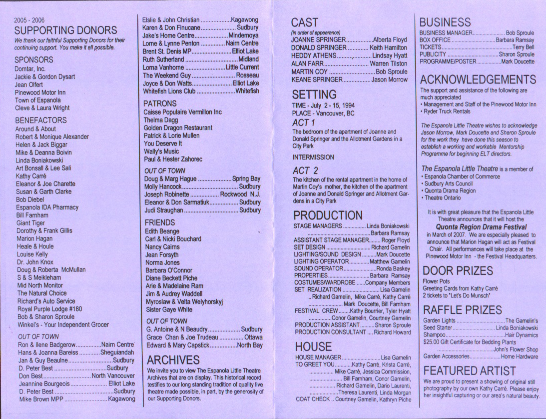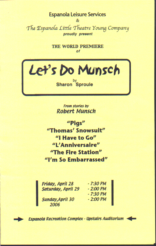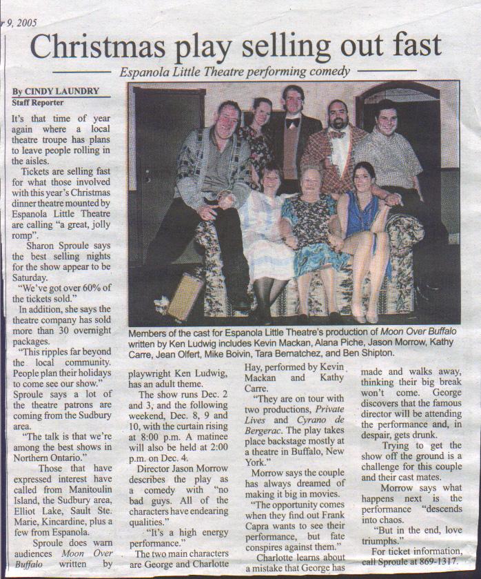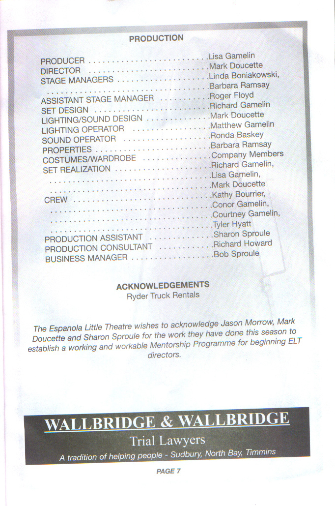 The Espanola Little Theatre, Box 5082 Espanola, Ontario P5E 1S1 (705) 869-8698