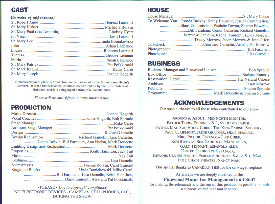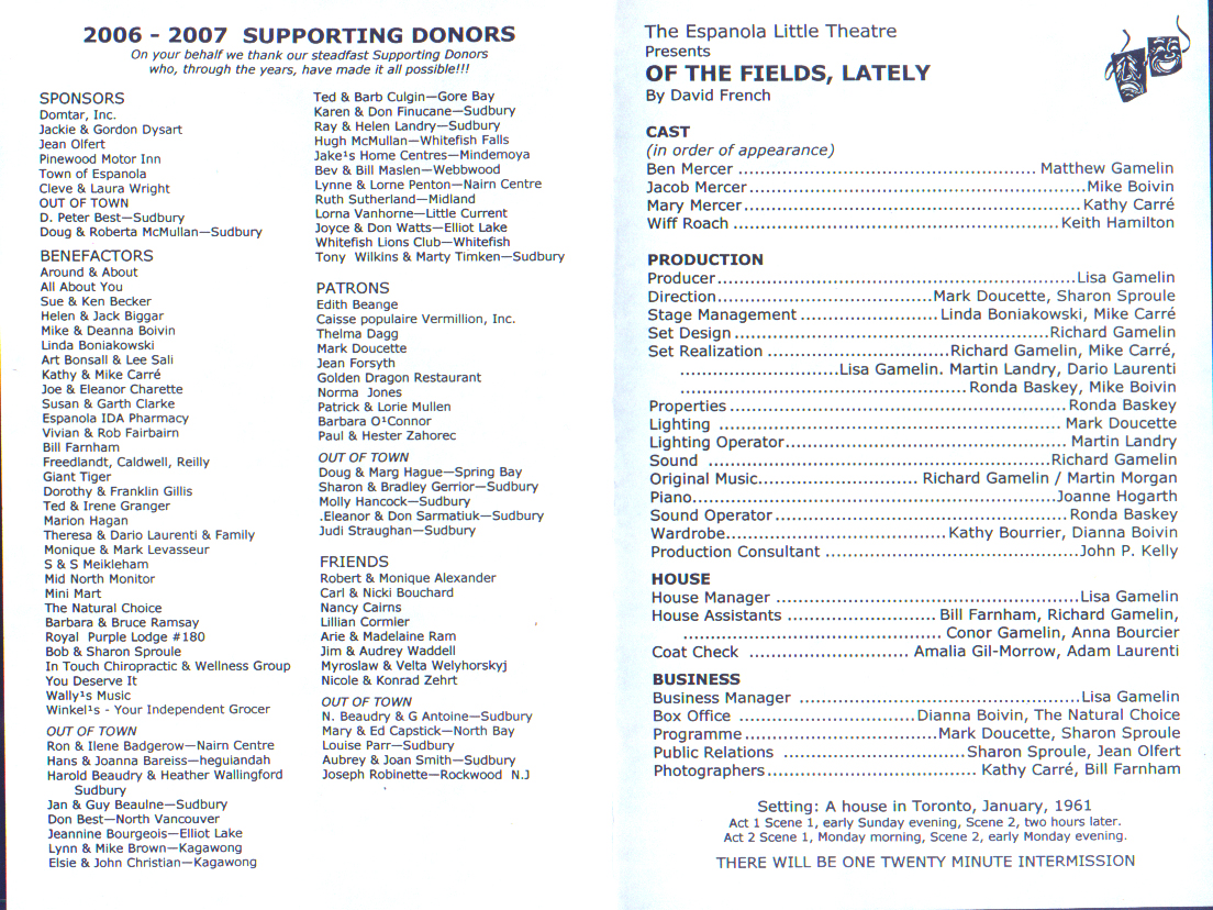 The Espanola Little Theatre, Box 5082 Espanola, Ontario P5E 1S1 (705) 869-8698