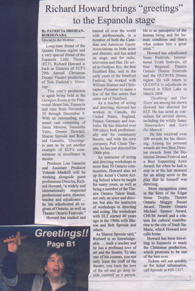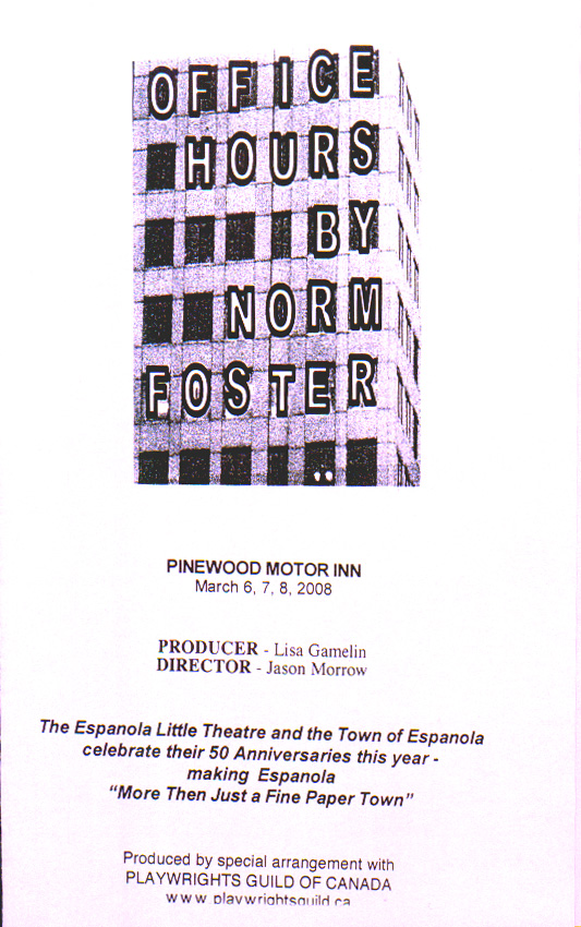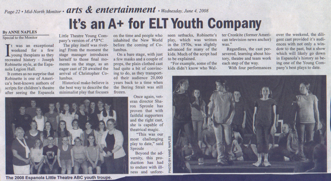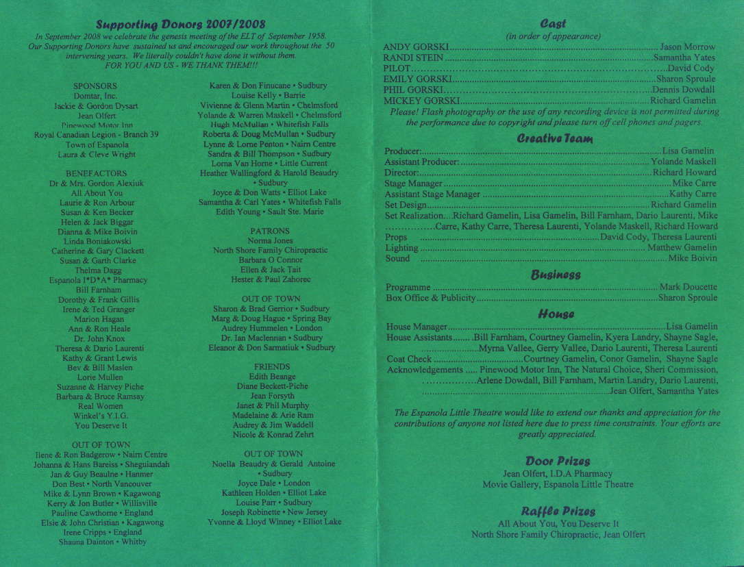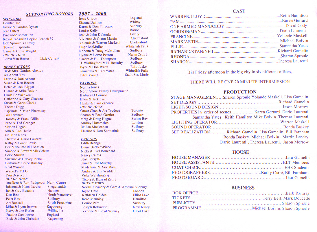 The Espanola Little Theatre, Box 5082 Espanola, Ontario P5E 1S1 (705) 869-8696