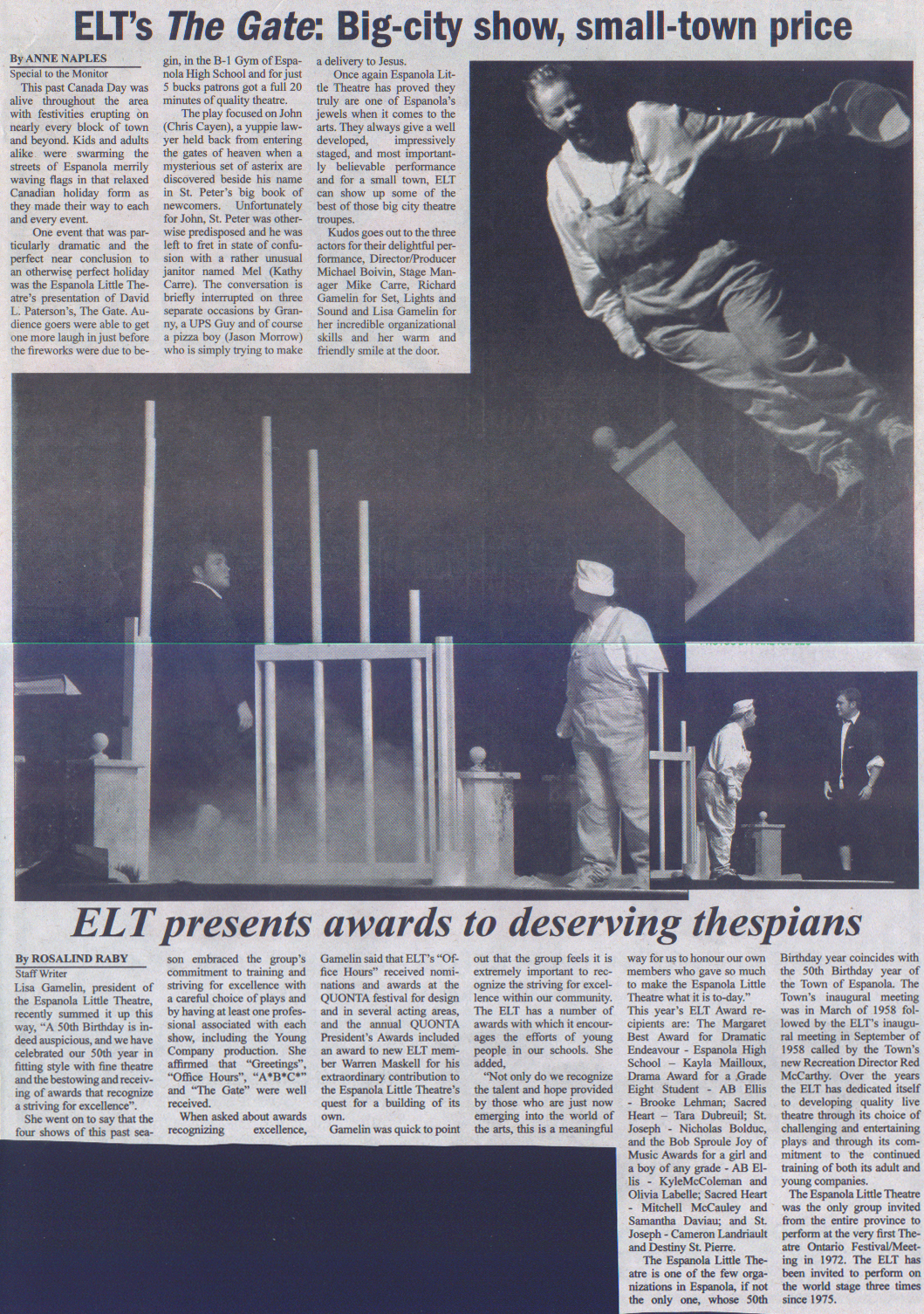 The Gate June 5 (Espanola High School) & 7 (Sault Theatre Workshop QUONTA One Act Festival), July 1 (Espanola High School)