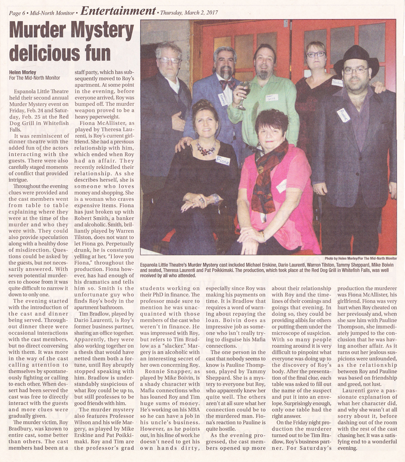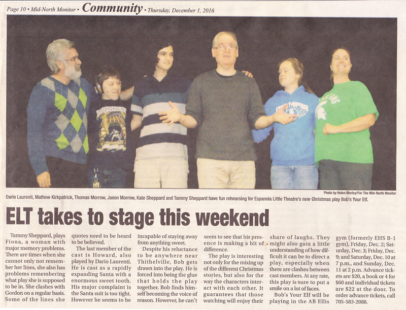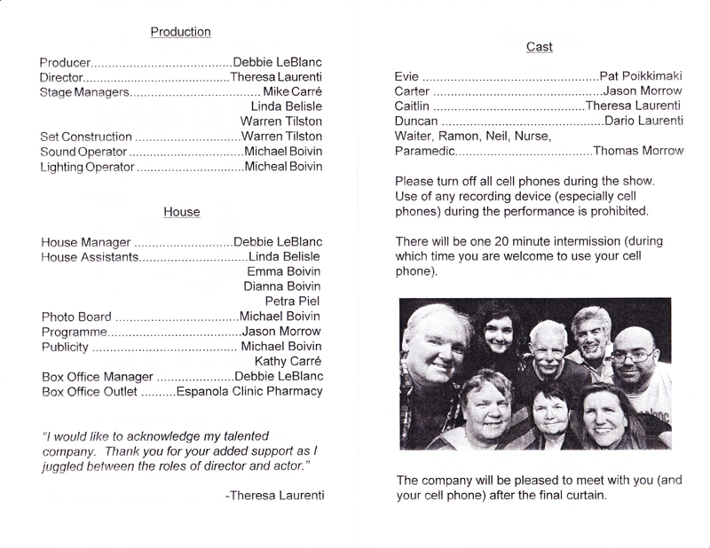 The Espanola Little Theatre, Box 5082 Espanola, Ontario P5E 1S1 (705) 869-8698