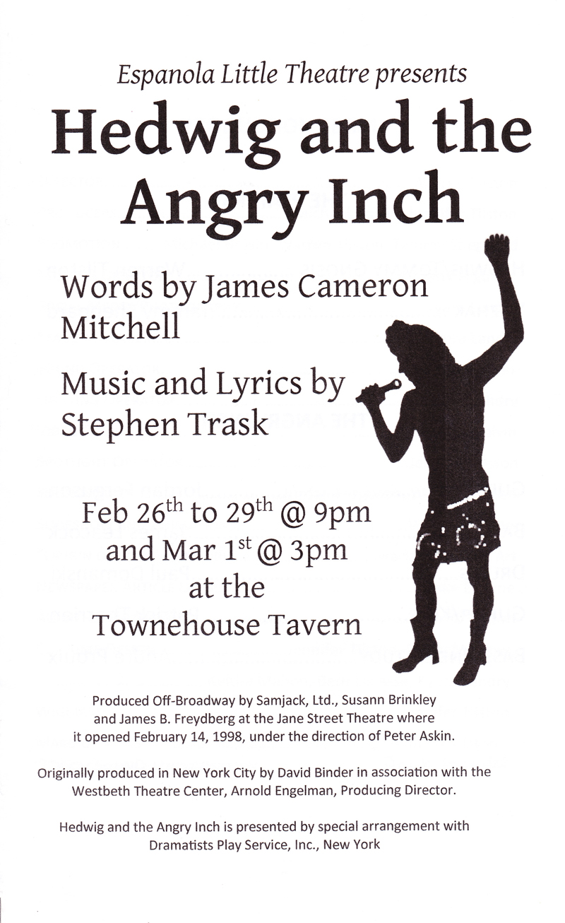 The unabridged, unbelievable, unauthorized pirated video of a show that may or may not be affiliated with ELTs production of Hedwig and the Angry Inch!ed