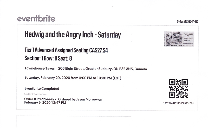 2019/20 Season Hedwig and the Angry Inch Feb 26, 27, 28, 29, March 1st (Townhouse Tavern, Sudbury)