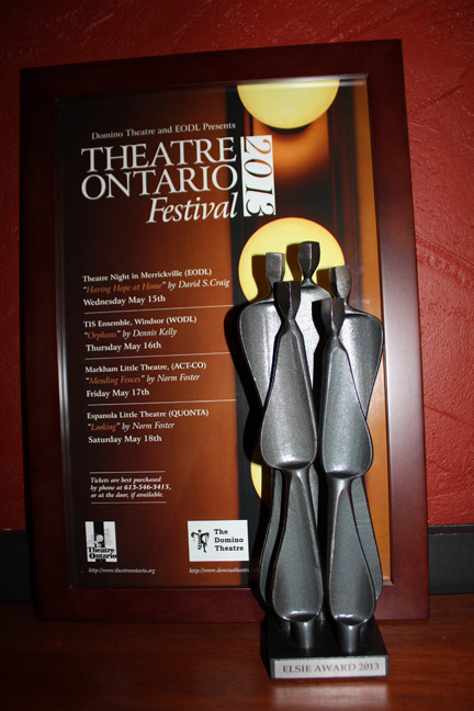 May 2013 We Won! Again! After a great time at the QUONTA festival hosted by North Bay in March, we were selected to represent the QUONTA region at the Theatre Ontario Festival in Kingston! Our May 18th performance of Norm Foster's "Looking" at the Davies Foundation Auditorium at 52 Church Street, Kingston won Theatre Ontario Best Production!
