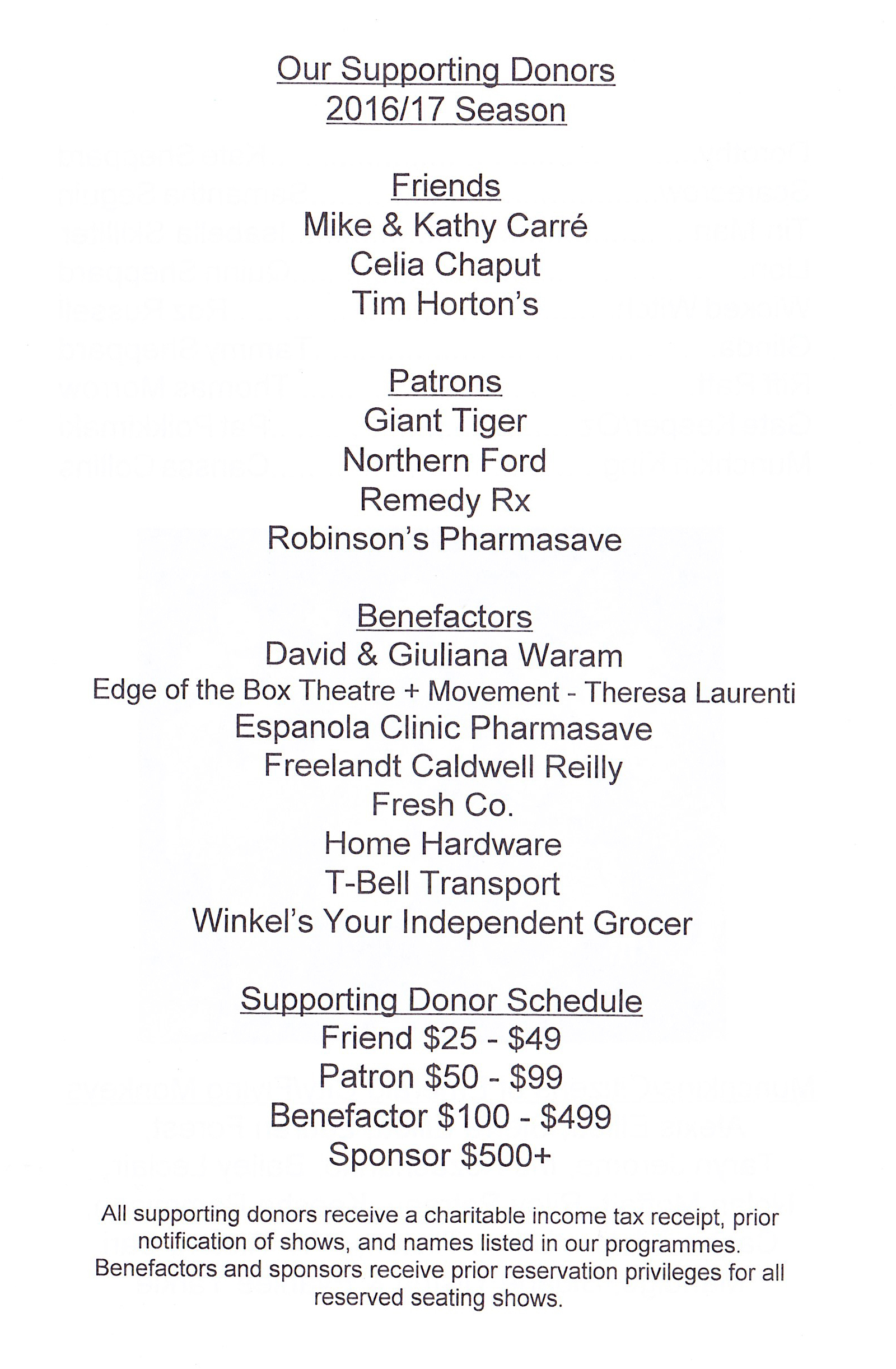 The Espanola Little Theatre, Box 5082 Espanola, Ontario P5E 1S1